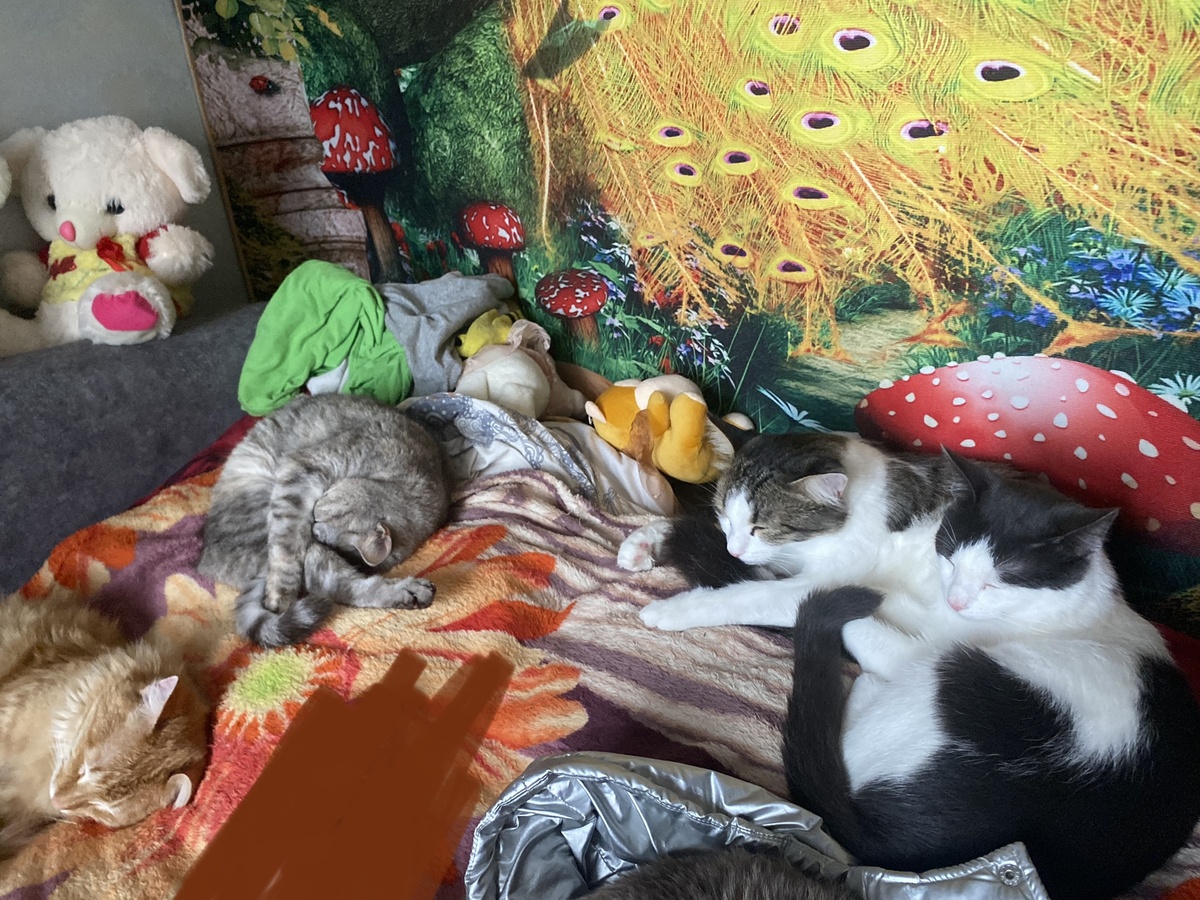 Нарни сходил с ума и закапывался под полотенце и копал покрывало на диване, он был супер сумасшедшим 🙀 Но зато последние два дня спит сладко крепким сном 😻