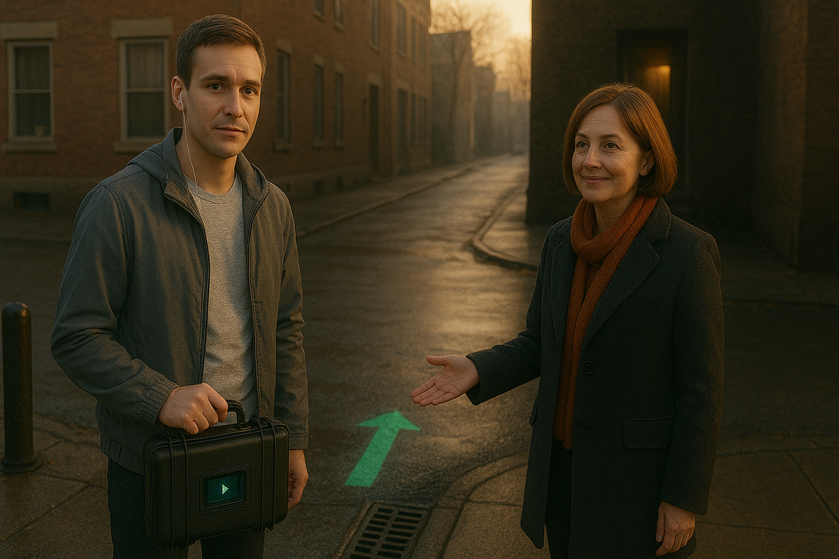 Город подписан на «безопасные маршруты». Приложение рисует зелёные нитки, и по ним идут — тихо, уверенно, со скидками за послушание. Мой новый заказ — аудиогид «для пешеходов и прочих сомневающихся». Голос в нём похож на мой, только старше и спокойнее, словно кто‑то записал инструкции с другого конца моей дороги и запер дверь изнутри. «Продолжай движение», — говорит он и делает паузу, как будто ждёт, что я соглашусь.