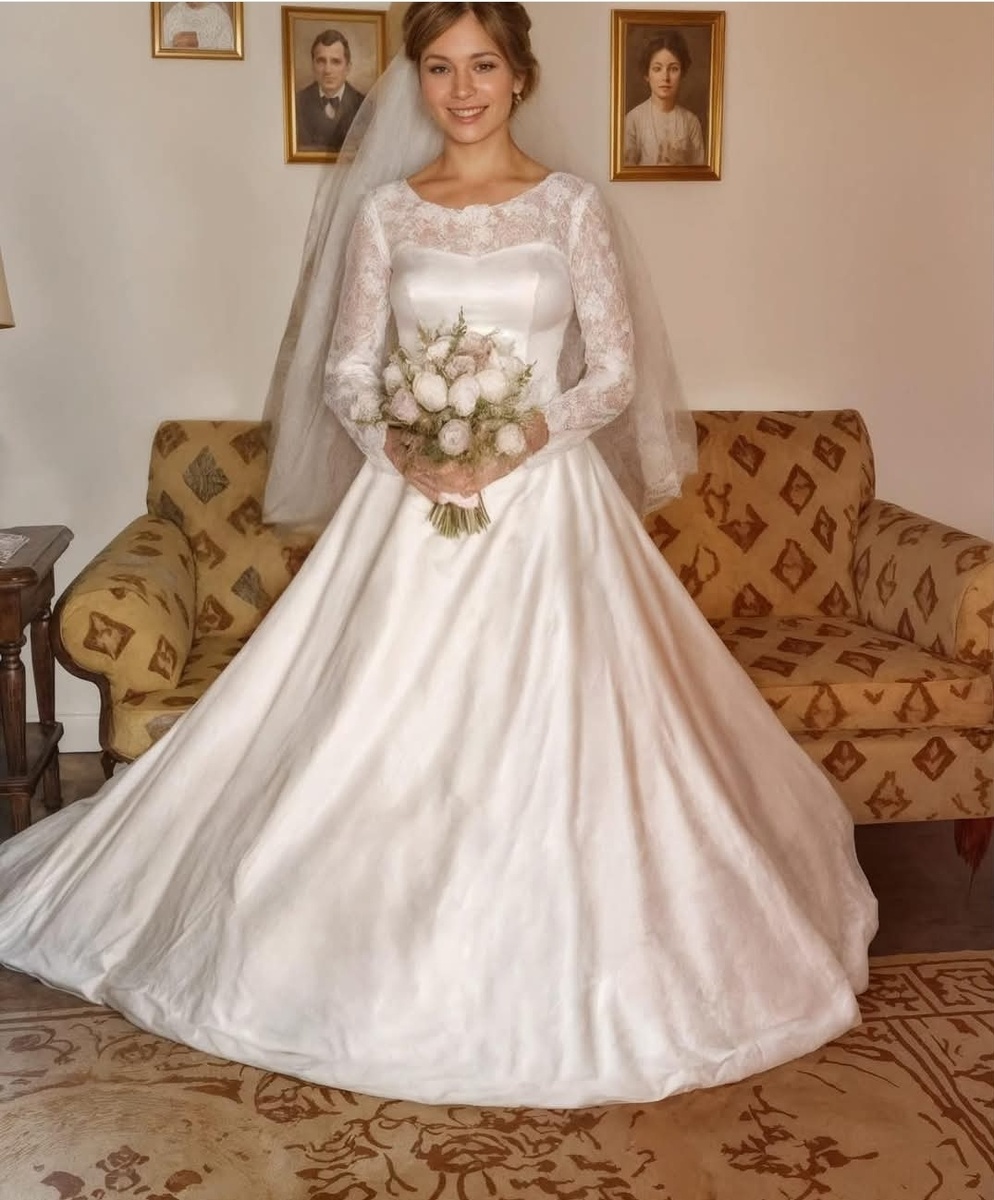И тогда я увидел его. Белое платье, висящее на вешалке у края стола. Кружева, жемчуг по подолу, тонкий шелк, пожелтевший от времени. Сердце ухнуло в пятки. Я подошел ближе, пальцы дрожали, когда я коснулся ткани. То самое. Вышивка мамы — мелкие розы по краю рукава, ее почерк в каждом стежке.