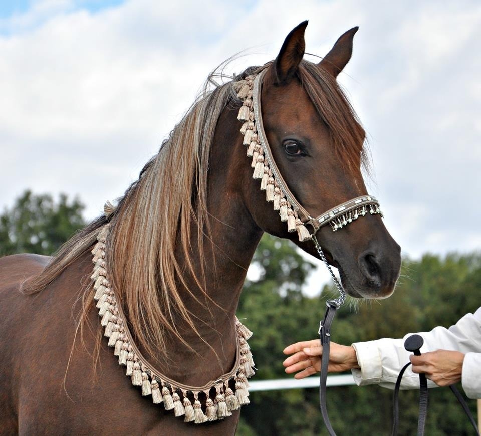 •Выставочные недоуздки — это специализированный декоративный головной убор, используемый для представления лошади в классе «в руках» (или «недоуздке») на соревнованиях или шоу-выводке. В отличие от повседневного недоуздка, выставочные недоуздки предназначены для улучшения внешнего вида лошади и улучшения восприятия команд всадника, при этом его стили различаются в зависимости от породы. Могут быть из тонкой кожаного шнура, нередко украшены металлическими накладками. Под подбородком проходит металлическая цепочка, концы которой при натяжении чомбура давят на нижнюю челюсть, давая контроль над лошадью в случае непредвиденных ситуаций.