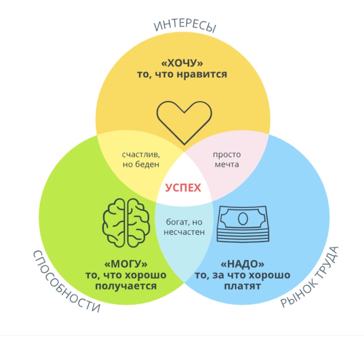 О ВАШЕЙ ПРОФЕССИИ☎️ На схеме указаны мотивы и их пересечения в выборе профессии👇🏼 ХОЧУ🪄это желания, которые удовлетворяют ваши потребности в выборе профессии: кем Вы хотите работать. МОГУ💪🏽это возможности, соответствующие Вашим желаниям: способности, состояние здоровья, уровень знаний и умений. НАДО💶это информация о потребностях рынка труда: об отраслях народного хозяйства, о востребованных специальностях и профессиях, о требованиях к профессионально важным качествам. КУДА, КАК ВЫ ДУМАЕТЕ, МОЖНО ОТНЕСТИ СЕЙЧАС ВАС И ВАШУ ПРОФЕССИЮ, В БОЛЬШЕЙ СТЕПЕНИ? 🤔 Как минимум 2 раза в жизни люди серьезно задумываются о своём профессиональном пути. Диапазон с 14 до 18 лет - выбор основной профессии; с 30 до 40 лет - переосмысление своего выбора. Предлагаю свериться по тесту на выявление склонностей к видам деятельности📊: https://psytests.org/work/yovrez.html Обзор профессий и изучение последних трендов🆕: https://atlas100.ru/catalog/ Периодически сверять и корректировать меняющиеся п