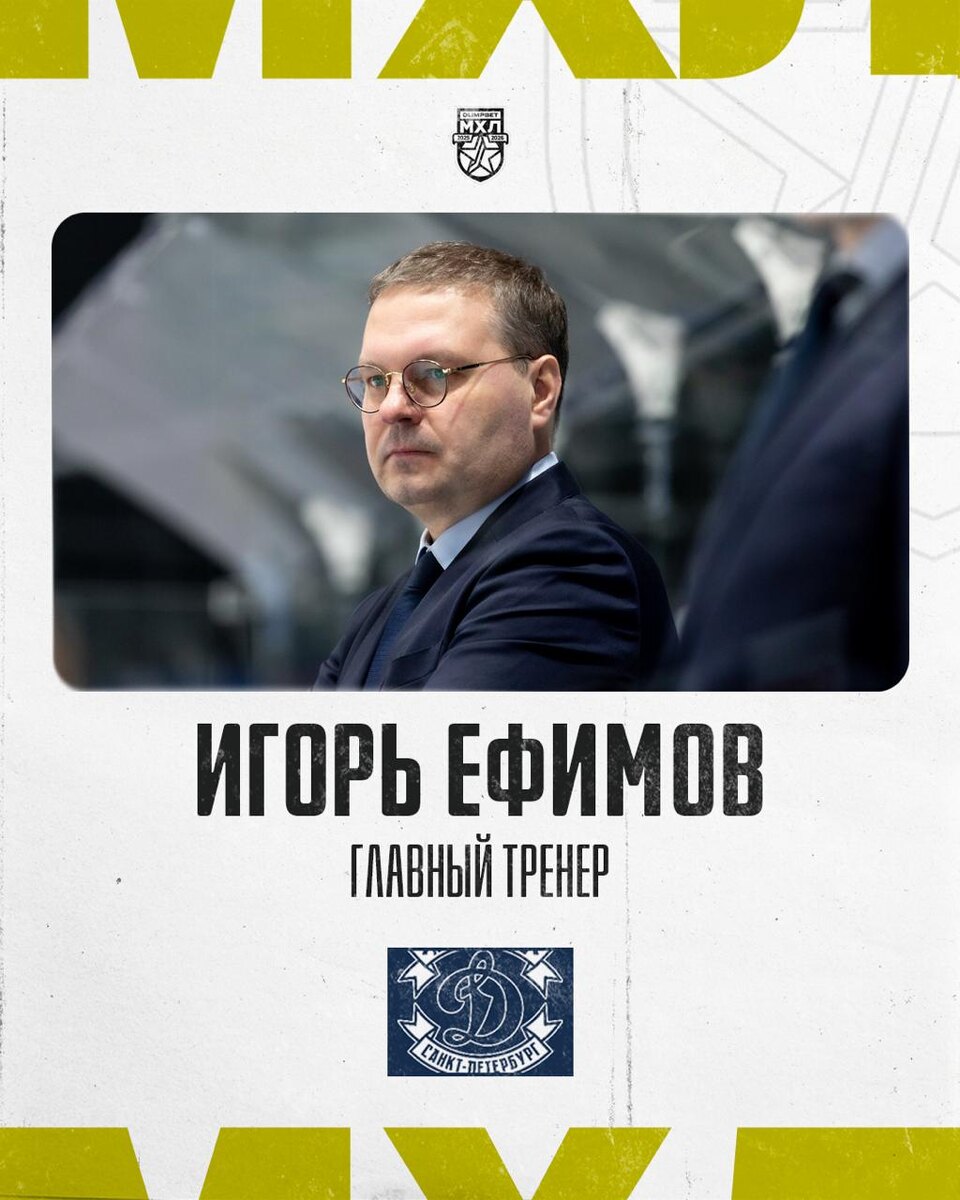 Игорь Ефимов — главный тренер МХК «Динамо» СПб Специалист сменил на посту Михаила Вареника, который возглавлял коллектив с июня этого года. Исполнять обязанности главного тренера МХК «Динамо Санкт-Петербург» в гостевом матче против «Динамо-Карелии» 29 октября будет Алексей Кусакин. 🔗 https://mhl.khl.ru/news/20084/1168521/ 🏒 @mhlrus