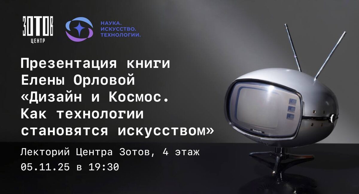 💫 Друзья, с радостью сообщаем вам, что в Центре Зотов состоится презентация книги Елены Орловой «Дизайн и космос. Как технологии становятся искусством»! Приглашаем всех 5 ноября в 19:30! Это первая в России книга-альбом, посвященная эпохе Space Age – уникальному феномену влияния науки и технологий на появление нового стиля космической эры в промышленном дизайне 1960–80-х годов. На презентации Елена расскажет, как возник стиль Space Age, почему он снова в тренде и, конечно, о самых знаковых предметах коллекции и историях их создания. Также на презентации вы сможете увидеть несколько оригинальных предметов коллекции, и получить наш мерч! 🎟 Вход свободный по регистрации 🛸 Регистрация На презентации можно будет приобрести книгу с автографом автора — а если вы не сможете прийти, напоминаем, что книгу всегда можно купить на нашем сайте Ждём вас — будет тёплая встреча и много вдохновения!💘🛸💫