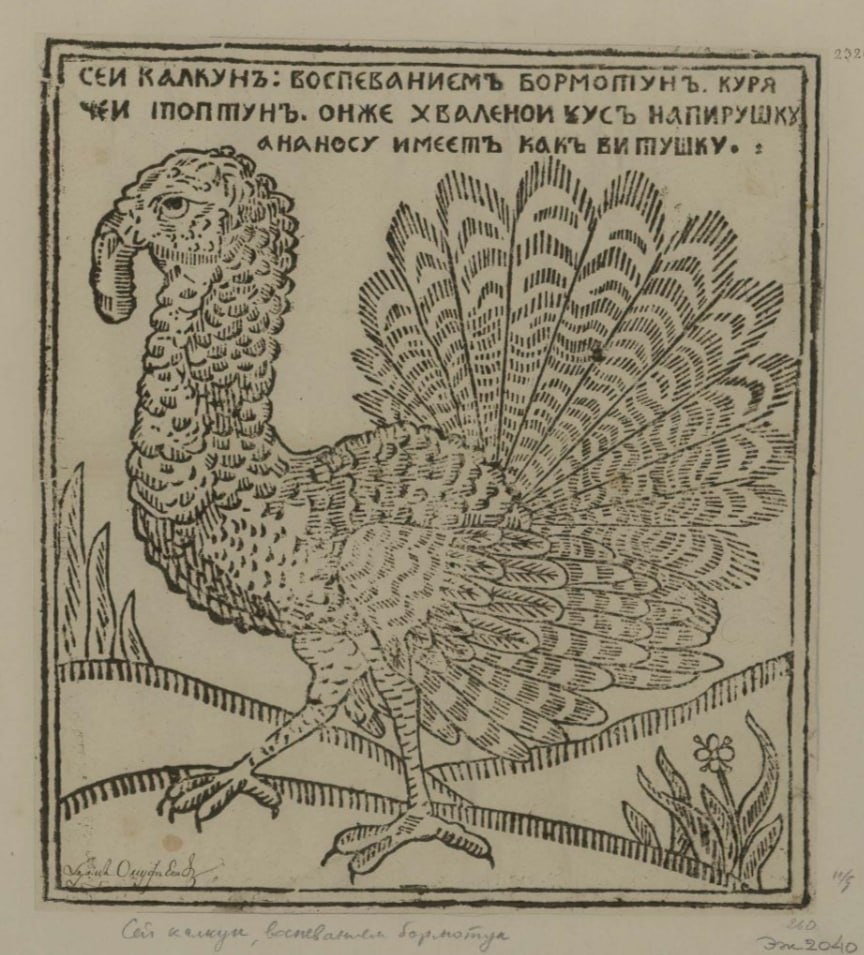 Индюк - индейский петух. Лубок XVIII века