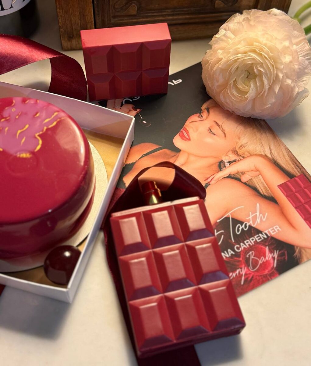 Вечер перестает быть томным… Тестирую аромат-шоколадку Cherry Baby — третий из коллекции Sweet Tooth by Sabrina Carpenter и размышляю над трендами, запущенными «Оземпикономикой». Точнее — как похудение влияет на восприятие запахов. Про термин рассказала в презентации про тренды Анна Дычева-Смирнова накануне выставки InterCHARM на презентации для журналистов и блогеров, писала тут, а на самой выставке — для владельцев, маркетологов, технологов бьюти-индустрии. Согласно аналитике Анны и ее команды, спрос на гурманские ароматы вновь активно растет в период, когда есть не хочется, препараты для похудения сокращают аппетит, но дофаминовая потребность в сладком осталась. Я хоть свои уже 6 кг за два месяца скинула не на препаратах, но тоже замечаю снижение аппетита. И проверяю, насколько приятнее для меня стали звучать ноты сахара, вишни, шоколада и ванили. То есть попадаю ли я под историю «Есть не хочется, а сладенького хочется, но не есть…». И похоже, да, потому что Cherry Baby мне совсем