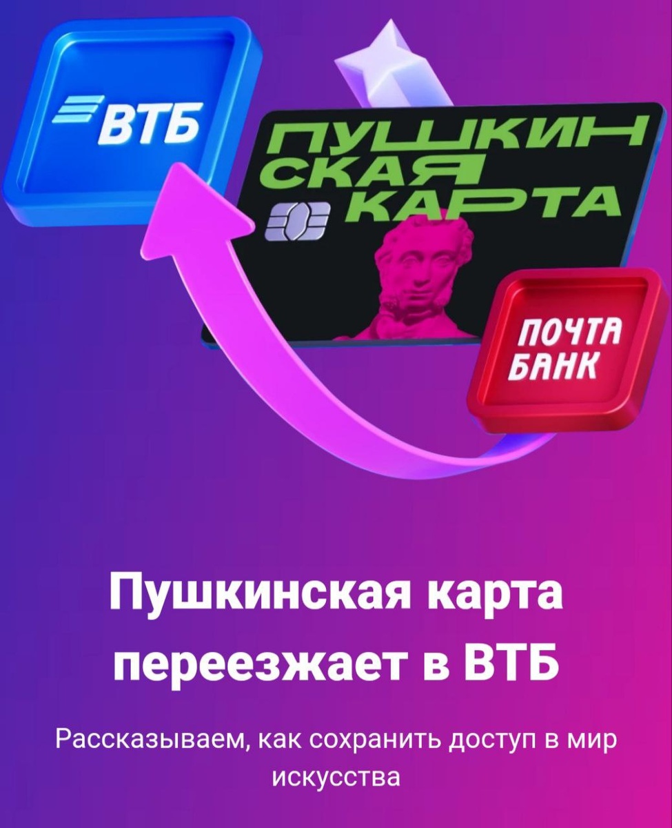 ❗С 1 января 2026 года банком-оператором программы «Пушкинская карта» станет ВТБ (сейчас Почта Банк)❗
