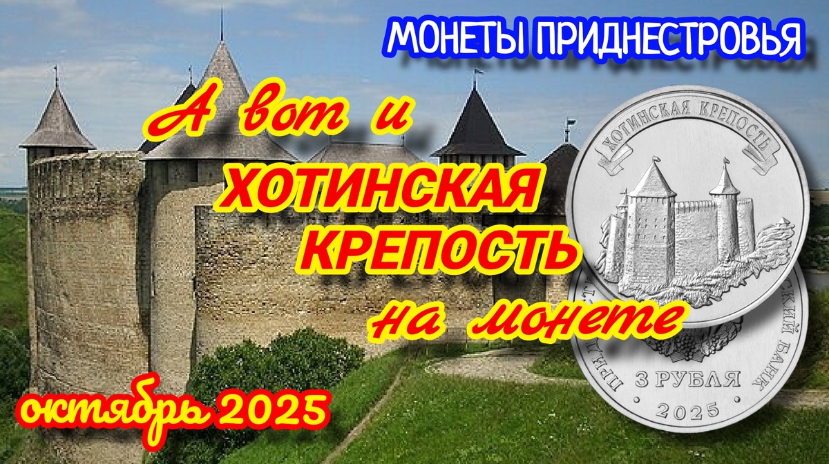Помните, буквально пару публикаций назад, был обзор приднестровских монет посвящённых древним крепостям на Днестре? (ОБЗОР ЗДЕСЬ >>>) В конце того обзора я предположил, что в этой серии должна появиться ещё одна монета - монета посвящённая Хотинской крепости. 🙂 Так вот, она появилась. 27 октября 2025 года Приднестровский республиканский банк ввёл памятную монету «ХОТИНСКАЯ КРЕПОСТЬ» из серии «Древние крепости на Днестре». Это шестая и скорее всего заключительная монета в данной серии. Почему «скорее всего»? Да, потому, что с Приднестровским республиканским банком ни в чём нельзя быть уверенным. Там работают талантливые люди. Если захотят, то ещё отыщут несколько крепостей, даже если их нет. 🙂 Хотинская крепость расположена рядом с городом Хотин Черновицкой области Украины. Основана она предположительно в 1325 году. То есть, в этом году отмечает своё 700-летие. Считать эту дату верной или нет - не знаю. В последние годы некоторым товарищам очень нравится переписать историю и дви