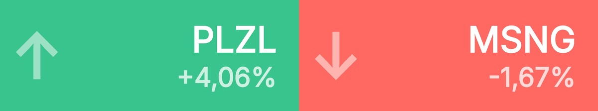 🔺 Топ-10 лидеров роста среди крупнейших акций: Полюс • 2 061 ₽ • 4,06% Татнефть • 539 ₽ • 3,60% Группа Рус • 111 ₽ • 3,43% Татнефть п • 508 ₽ • 2,88% Норильский • 126 ₽ • 2,41% Яндекс • 3 980 ₽ • 2,37% Европлан • 547 ₽ • 2,09% Астра • 288 ₽ • 2,02% ПИК • 387 ₽ • 1,71% Ростелеком • 57,40 ₽ • 1,68% 🔻 Топ-10 лидеров падения среди крупнейших акций: Мосэнерго • 1,88 ₽ • -1,67% ЭсЭфАй • 1 176 ₽ • -1,52% Северсталь • 852 ₽ • -1,41% Лукойл • 5 389 ₽ • -1,32% VK • 261 ₽ • -1,10% Инарктика • 504 ₽ • -1,08% Банк Санкт • 333 ₽ • -1,01% Интер РАО • 2,76 ₽ • -1,00% ФосАгро • 6 755 ₽ • -0,94% Эн+ • 375 ₽ • -0,92%