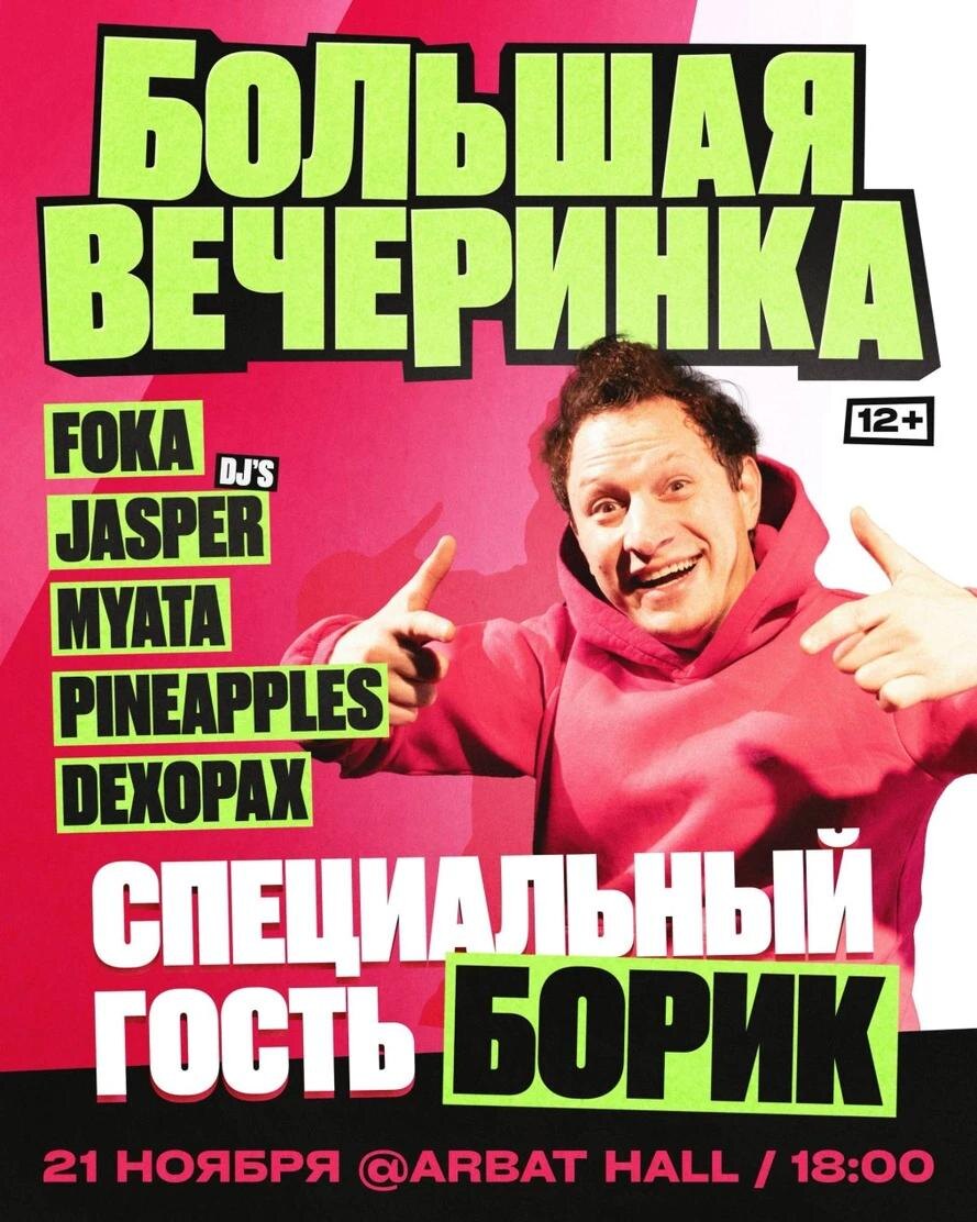 🎫 – «БОЛЬШАЯ ВЕЧЕРИНКА»: специальный гость БОРИК в Москве и Санкт-Петербурге