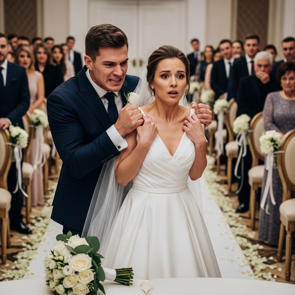 Свадебный зал замер. Двести гостей смотрели на жениха с невестой, стоящих посреди танцпола. Музыка оборвалась на полуслове.