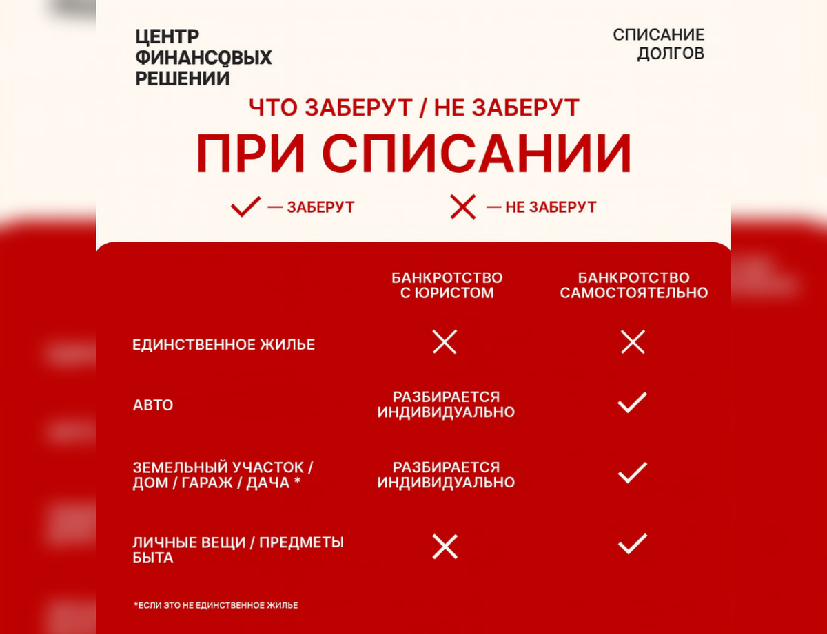 Многие уверены: «Справлюсь сам и сэкономлю». На практике цена такой «экономии» — риск потерять имущество: автомобиль, гараж, участок, дачу. В процедурах с участием кредитора или при ошибках в заявлениях имущество чаще уходит с торгов. Разбираем, где прячутся риски и как их минимизировать. Автомобиль, гараж/машино-место, дача/земельный участок, в ряде случаев — ценное имущество, не относящееся к единственному пригодному для проживания жилью. Нюансы зависят от залогов, сделки за последние три года и позиции суда. Первая консультация — бесплатно: разберём документы и честно скажем, подходит ли ваш случай под законное списание. Идёт розыгрыш Apple Watch SE 3 (2025): подпишитесь на партнёрский чат, выложите один статус и пришлите скрин. Подробности: https://t.me/+IOD9rAt6P9g1ZWQy Материал носит информационный характер и не заменяет юридическую консультацию. Каждая ситуация индивидуальна и требует оценки документов и обстоятельств.