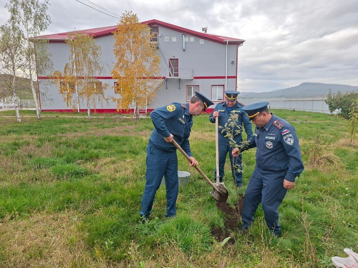 В Малокарачаевском пожарно-спасательном гарнизоне прошла экологическая акция по посадке садовых деревьев. Мероприятие было приурочено к 35-летию МЧС России и 100-летию со дня создания органов государственного пожарного надзора. Каждое дерево стало символом вклада людей, стоявших у истоков создания, становления и развития чрезвычайного ведомства.
