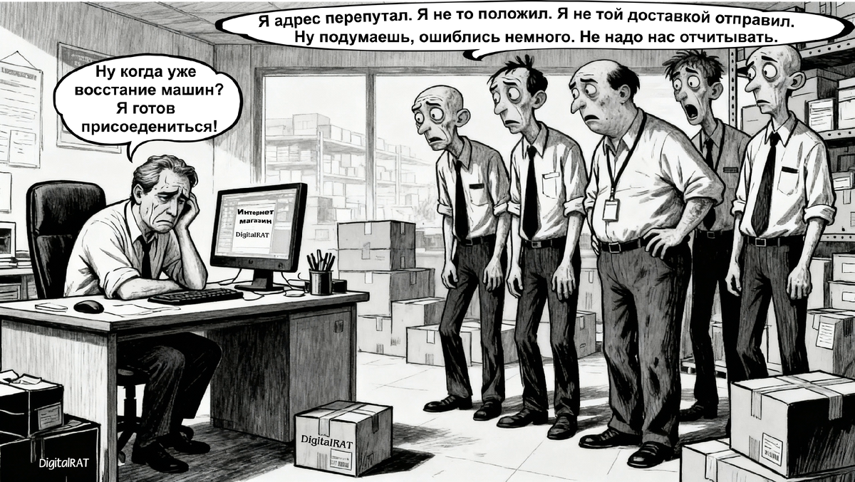 Помимо всех прочих своих занятий, сделал для одной организации интернет-магазин, ну и занимаюсь его поддержкой и обработкой заказов. Времени много не занимает, сложного ничего. И всё бы было замечательно, если были бы я, клиенты и искусственный интеллект. Но нет, есть ещё сотрудники, которые заняты в процессе обработки заказа. Те кто заказ собирает и передаёт его в службу доставки. Казалось бы ничего сложного. Вот тебе заказ, где написано, что сложить в коробку, в каком количестве и адрес, который надо указать при передаче в доставку. Что же может пойти не так? А всё может пойти не так, в каждом долбаном пункте, люди непонятно, как окончившие школу, некоторые даже, непонятно каким чудом, получившие высшее образование. Эти люди умудряются н