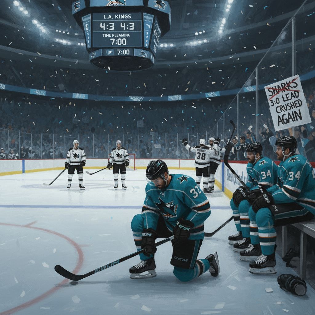Проигрывал Сан-Хосе 0:3 Лос-Анджелесу к середине матча. И начал погоню, и был успешен сравняв счёт. Но за семь минут до конца Кингз всё-таки забрали победу - 4:3. В стиле печального рассказа о невзгодах акул