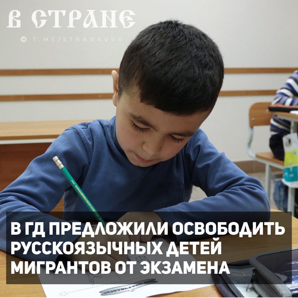 В Госдуму внесен законопроект об освобождении от обязательного тестирования по русскому языку при поступлении в школу детей русскоговорящих иностранных граждан. Документ размещен в думской электронной базе. Мнения? 🇷🇺 В Стране. Подписаться