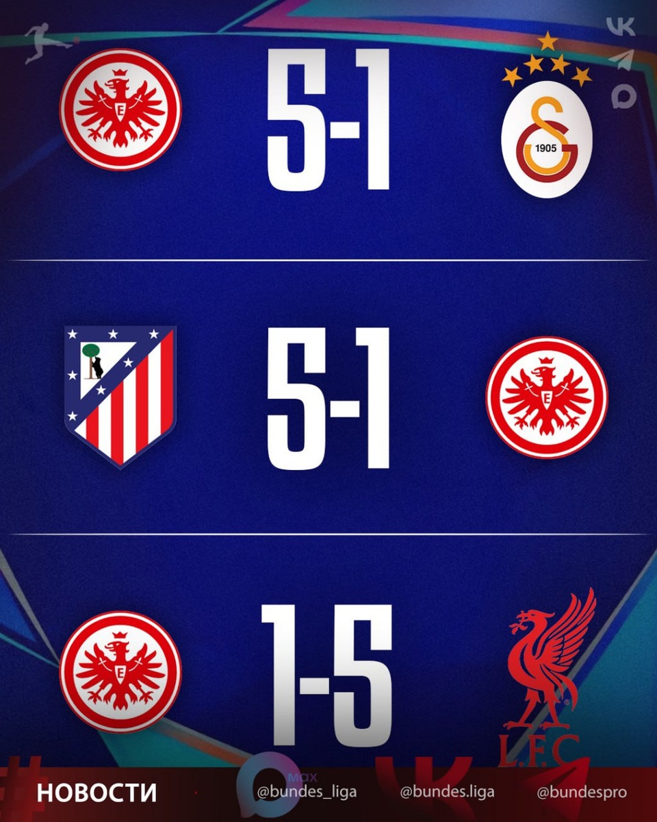 🏆 4 ноября 2025 года «Наполи» - «Айнтрахт» сыграют в Италии в рамках 4-го тура Лиги чемпионов УЕФА. Клуб из Франкфурта нас приучил к 6 голам в матчах с своим участием в ЛЧ и счёту 5:1 и 1:5. Кто выиграет 5:1 ... ? 🤣 👍 Наполи ❤️ Айнтрахт ⭐️ MAX /// Видео+ ❤ Телеграм /// Аналитика+ ✅️ Флагманская /// Новости+