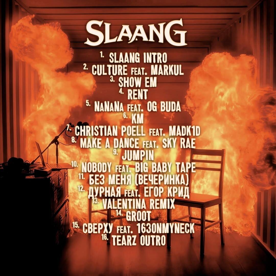 ⚡Aarne и Toxi$ показали треклист совместного альбома «SLAANG» Треклист: 1. SLAANG INTRO 2. CULTURE ft. MARKUL 3. SHOW EM 4. RENT 5. NANANA ft. OG Buda 6. KM 7. CHRISTIAN POELL ft. madk1d 8. MAKE A DANCE ft. SKY RAE 9. JUMPIN 10. NOBODY ft. Big Baby Tape 11. БЕЗ МЕНЯ (ВЕЧЕРИНКА) 12. ДУРНАЯ ft. Егор Крид 13. VALENTINA REMIX 14. GROOT 15. СВЕРХУ ft. 163ONMYNECK 16. TEARZ OUTRO Премьера альбома — 7 ноября. @mainstreamusic
