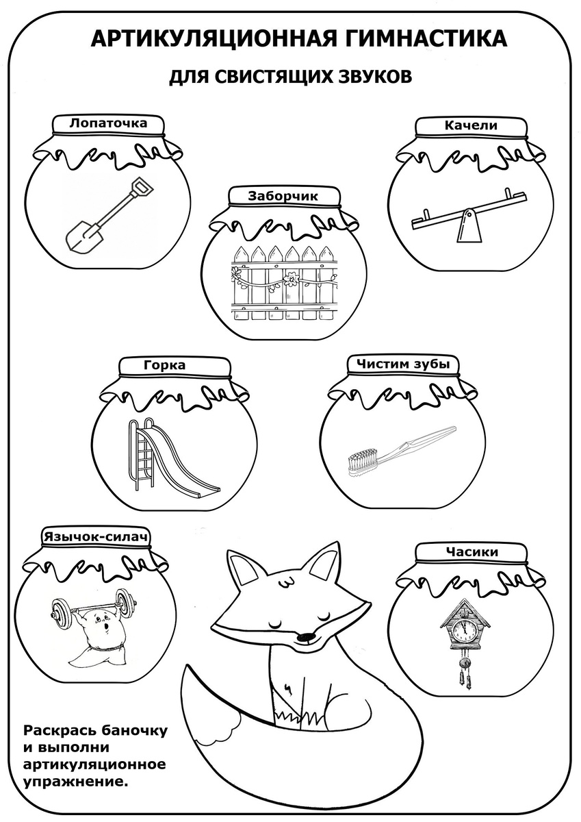 Наказать непослушный язык: немного приоткрыть рот, спокойно положить язык на нижнюю губу и, пошлепывая его губами, произносить звуки пя-пя-пя … Заборчик: зубы плотно сжаты, губы в положении улыбки. Выполнять 5-6 раз по 10-15 секунд. Лопаточка: рот открыт, широкий расслабленный язык лежит на нижней губе. Удерживать его в таком положении под счет от одного до пяти – десяти. Следить, чтобы язык не высовывался далеко: он должен только накрывать нижнюю губу. Боковые края языка должны касаться углов рта. Птенчики: рот широко открыт, язык спокойно лежит в ротовой полости. Язык – силач: рот приоткрыт, отпустить широкий кончик языка к нижним передним зубам и упирать язык в зубы. Горка: рот открыт, кончик языка упирается в нижние резцы, спинка языка поднята вверх. Чистим зубы: приоткрыть рот и кончиком языка «почистить» нижние зубы, делая сначала движения языком из стороны в сторону, потом снизу вверх. Двигая кончиком языка из стороны в сторону, следить, чтобы он находился у десен, а не скользи