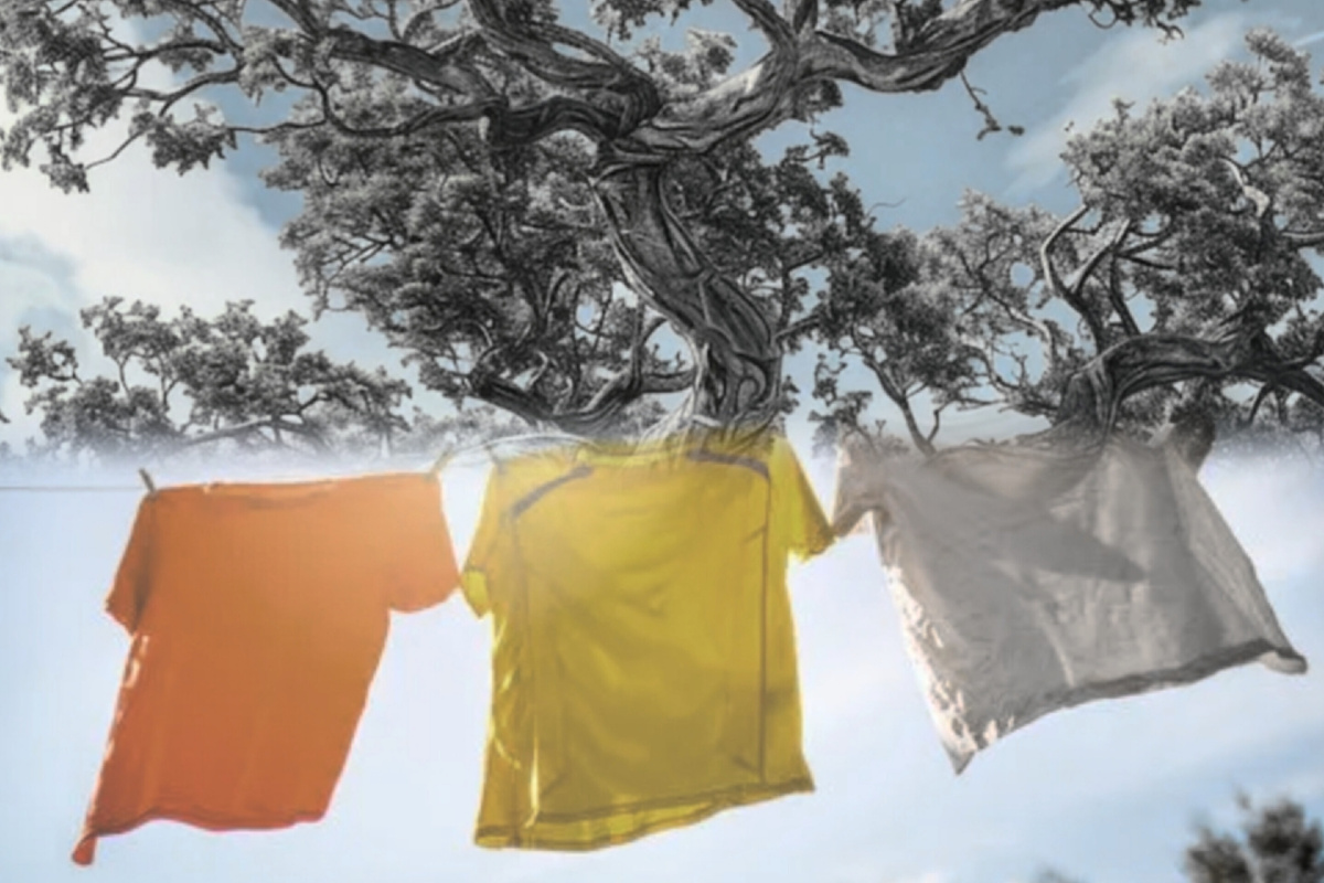 Он уже знал что увидит. Синие мужские трусы висели на дереве. Носки, похожие на воробьев, висели чуть ниже. На чей-то балкон спускалась его майка.