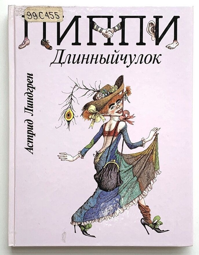 Представляю вам одну из обложек к книге "Пеппи Длинныйчулок". Люди, читавшие книгу, без особых проблем назовут и эпизод, который иллюстрирует этот рисунок художника Михаила Бычкова. Это Пеппи собирается на ярмарку: — Ну как я вам нравлюсь? Хороша, да? Да, с этим Томми и Анника не могли не согласиться. Пеппи подвела брови углем и намазала красной краской ногти и губы. На ней было платье до пят, с большим вырезом на спине, в котором виднелся красный лифчик. Из-под платья торчали ее огромные черные туфли, но и они выглядели празднично: Пеппи приделала к ним зеленые помпоны — Пеппи носила эти помпоны в особо торжественных случаях. — Я считаю, что, когда идешь на ярмарку, надо выглядеть как настоящая дама, — заявила она и пошла по дорожке, подражая, насколько ей это удавалось в ее огромных туфлях, походке городских модниц. Она придерживала край волочившейся юбки и каждую минуту произносила не своим голосом, явно подражая кому-то: — Очаровательна! Просто очаровательна! Внимание, вопрос - как