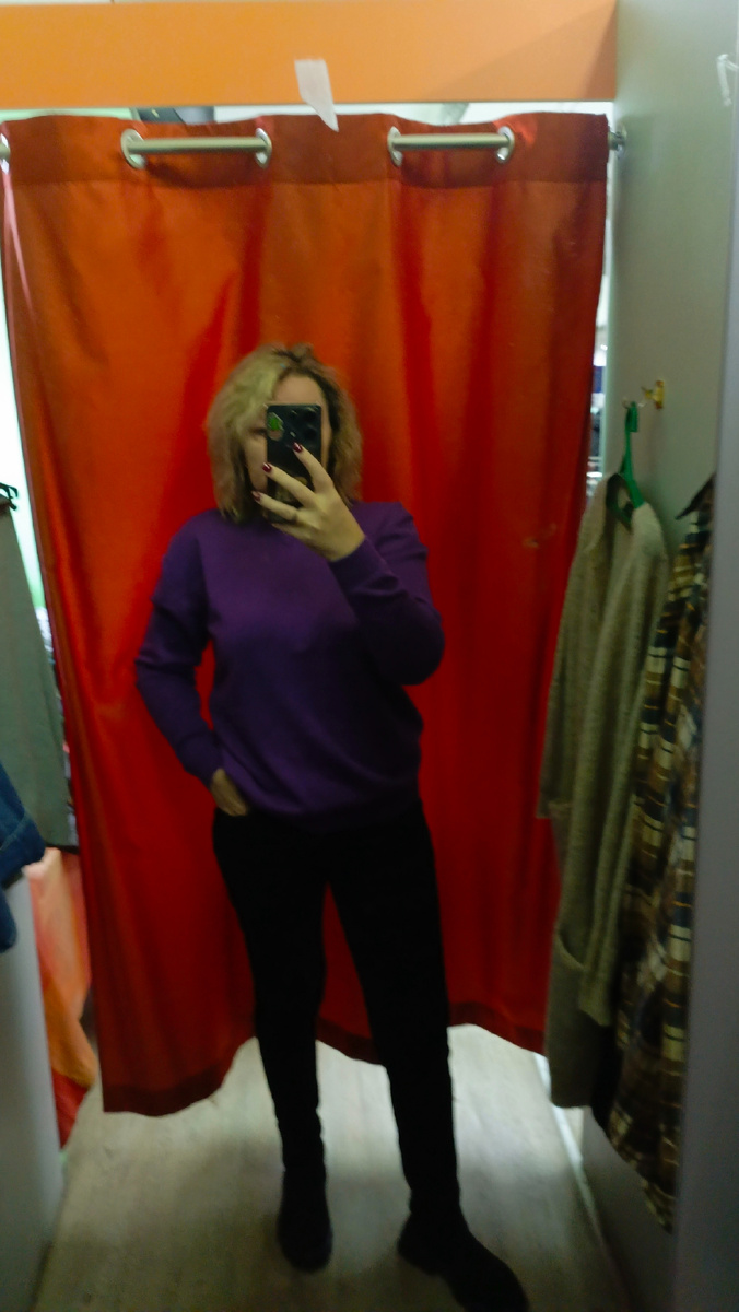 Весьма непонятный свитер: то ли сшит так, то ли растянут, хотя рукава, наоборот очень узкие. 😱🤔