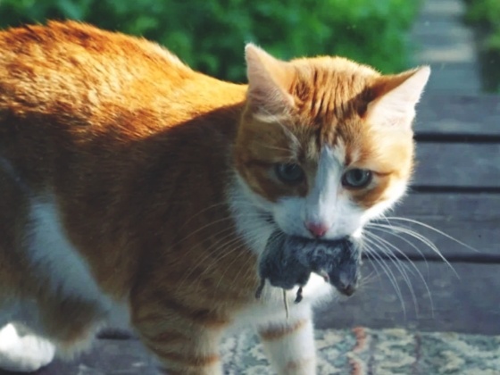 - Ну и конечно же не стоит бурно реагировать на принесенную в дом мышь и тем более не надо ругать своего мяукающего питомца, ведь он так старался ловил, а потом нес, чтобы показать добычу вам.