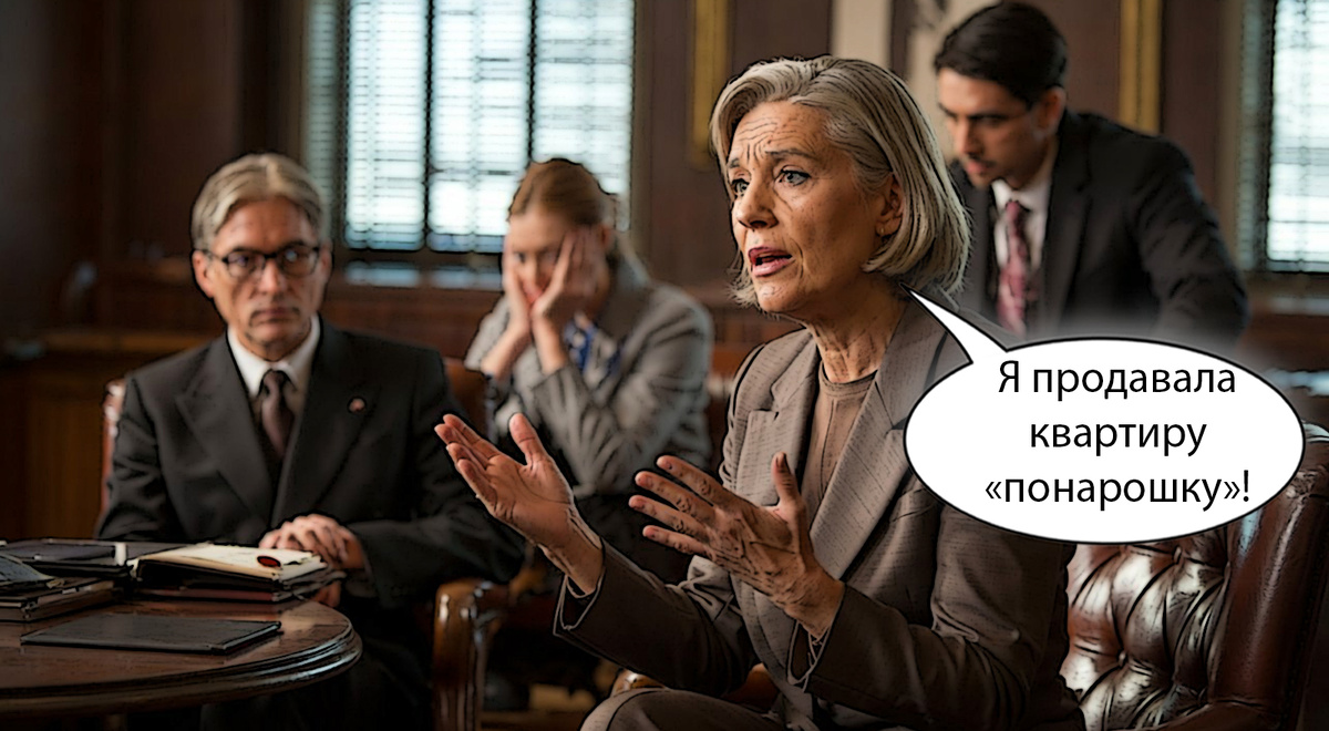 Орда свидетелей в процессе рассказывает, как несчастная женщина рыдала/переживала по поводу проданной квартиры, клялась-божилась, что продавать ничего не планировала и не хотела, искренне веря, что "спасает свое жилье через фиктивную сделку". Нам ее, разумеется, жалко, но добросовестного продавца жаль не меньше.