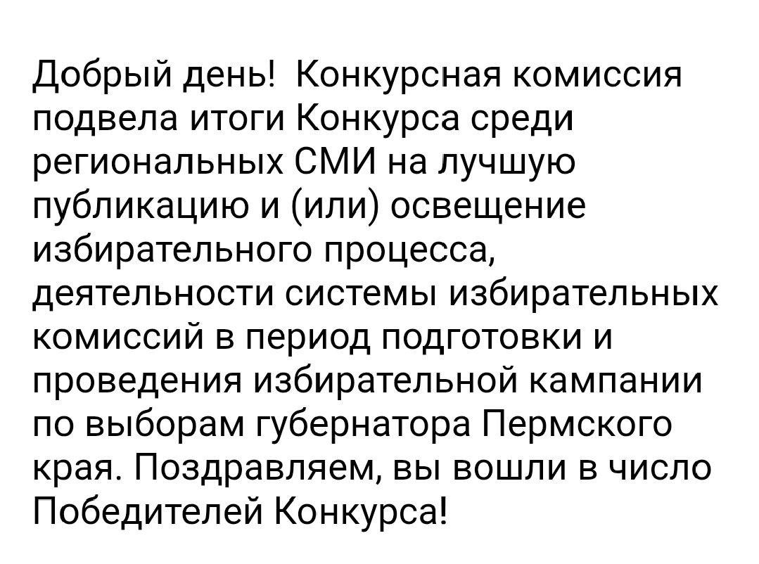 Себя не похвалишь - никто не похвалит! 😇 Как-то так неожиданно вошла в число победителей конкурса от краевой Избирательной комиссии! Спасибо коллеге из МАГМЫ, что предложил принять участие. Приз денежный (только тщщщщщ😊)