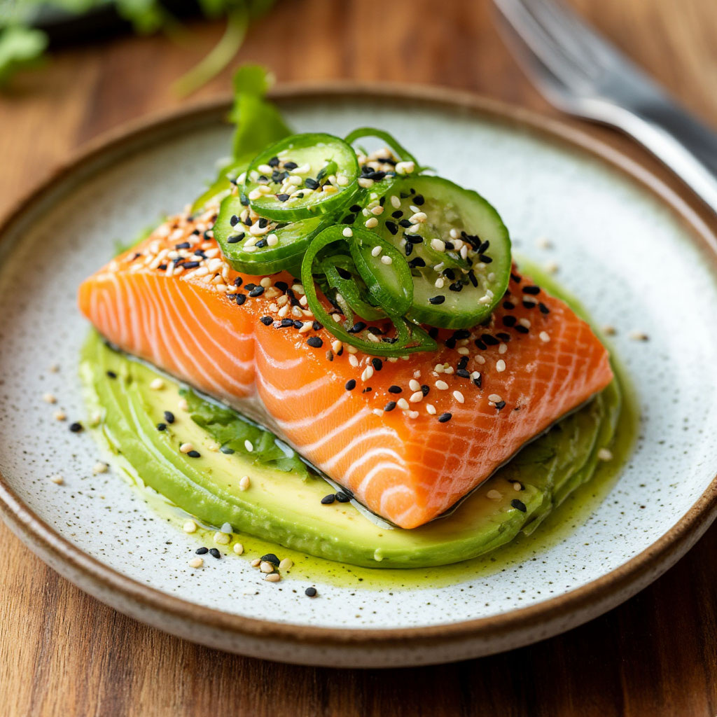 Особенность: сочетание сырой рыбы с пикантным соусом и хрустящим кунжутом. Время: 20 минут (без маринования).