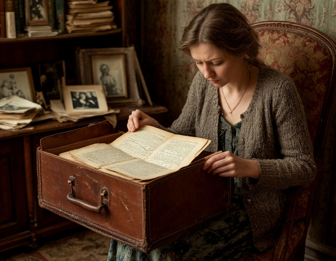 Ирина медленно поднялась с кресла и вышла из комнаты без слов. Вернулась она с большой, потрепанной кожаной папкой в руках. Она открыла ее дрожащими пальцами. Внутри лежали старые фотографии, письма и выцветшее генеалогическое древо.