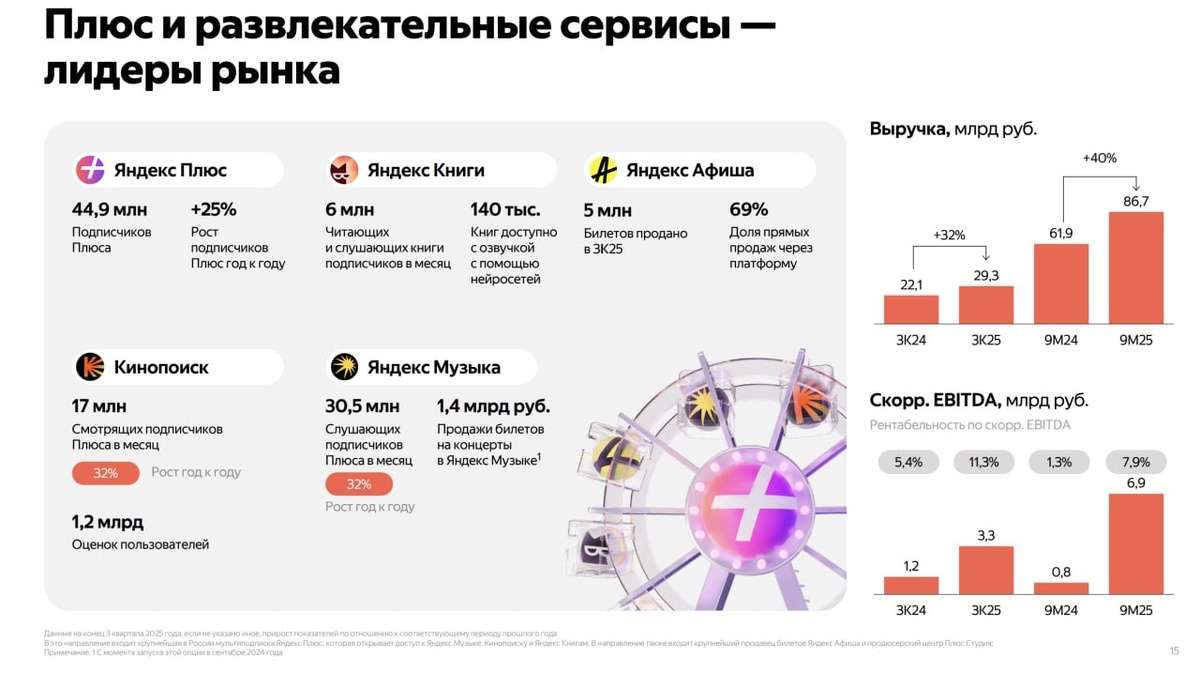 Сегодня Яндекс опубликовал отчетность за третий квартал 2025 года, и я сразу перелистнул на слайд, где дана информация про Книги