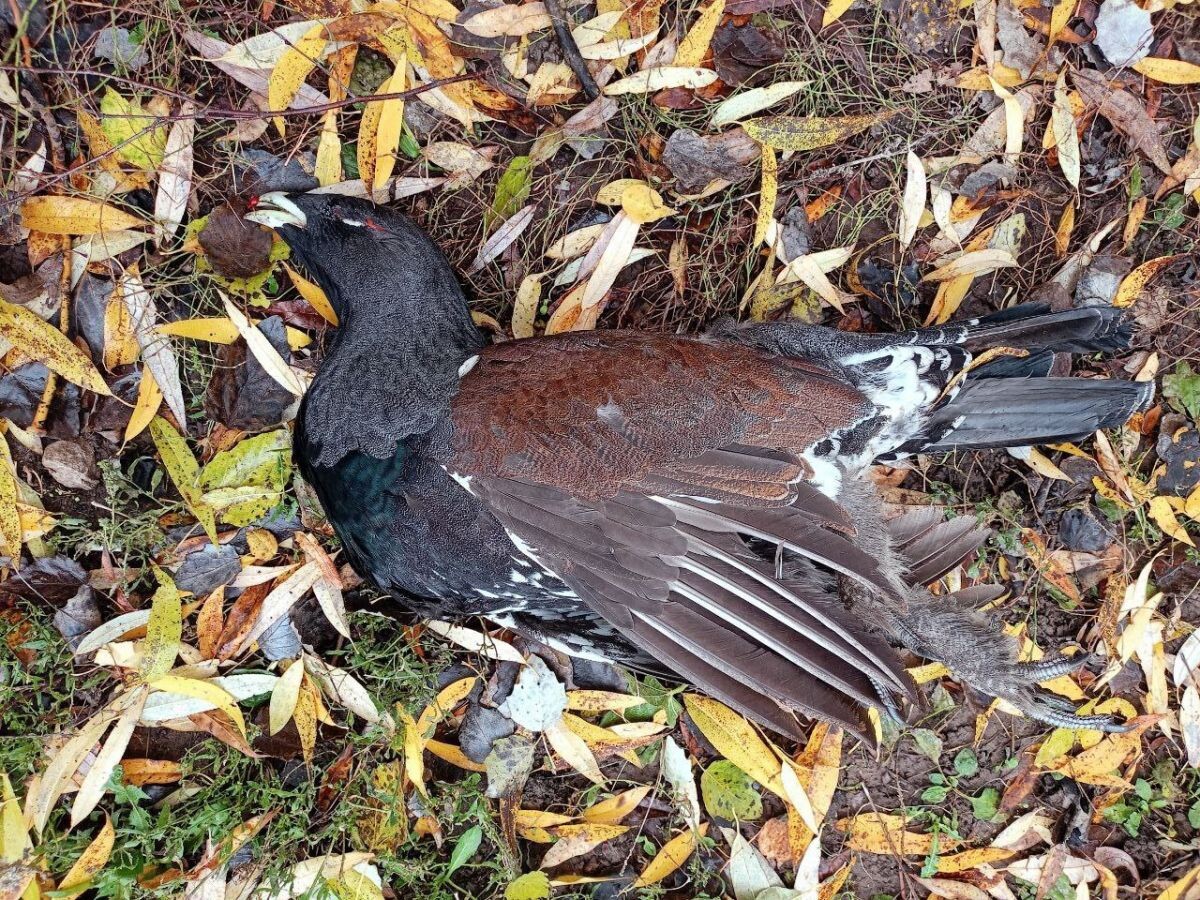 В Рязани в микрорайоне Дашково-Песочня возле детской библиотеки обнаружили мертвого самца глухаря. Об этом сообщили в Telegram-канале «Иду лесом, несу дичь». На теле птицы не было видимых повреждений, однако на клюве имелись следы крови, что указывало на возможную черепно-мозговую травму. По недоразвитым трубкам в хвостовых перьях специалисты определили, что глухарь — молодой, не старше одного года. При этом он был крупным — весом около 5 килограммов. На место происшествия вызвали сотрудников МЧС и орнитологов. Вскрытие подтвердило, что причиной смерти стала черепно-мозговая травма.