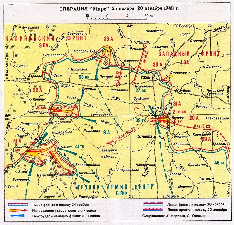 Операция "Марс", также известная как Вторая Ржевско-Сычёвская наступательная операция, проводилась Красной Армией с 25 ноября по 20 декабря 1942 года в районе Ржевского выступа. Она является частью более масштабных и кровопролитных сражений, известных как Ржевская битва или "Ржевская мясорубка", которые длились с января 1942 года по март 1943 года.