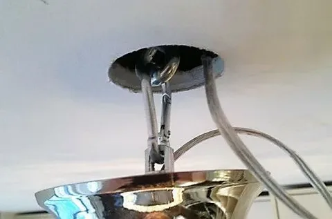 6. Подвесьте люстру на крюк, соедините провода (обязательно используйте клеммные колодки, а не скрутки!), спрячьте соединения в декоративный колпак люстры и закрепите его.