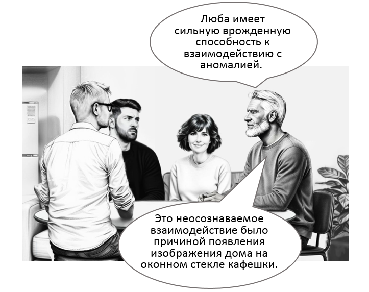 Наша дружная компания расположилась за столом в моей кухне, Павел подводил итог. Все эпизоды по этой ссылке Если Любу немного подучить, потренировать, то из нее получится очень сильный оператор! Павел, когда первый раз заметил на окне след взаимодействия Любы и ПВА* (да, продвинутый оператор эти следы может «видеть»!), заволновался, потому что решил, что это были действия обученного человека, имеющего какие-то свои намерения. Примечание. *ПВА — пространственно-временная аномалия Накануне Павел как раз получил сообщение от Антона Ковальчука о всплеске интереса некоторых западных спецслужб к подобным явлениям и подумал, что лучше предпринять какие-то меры, чем ничего не делать… На этом месте Димон вскочил и звучно хлопнул ладонью по столу, люстра под потоком вздрогнула и покачнулась… Мы с Любой в ответ согласно промолчали, чтобы не нарываться… По-военному четкий ответ Павла Димона устроил. Звякнул домофон — это курьер принес пиццу. Да, все проголодались! Мы с Любой занялись кофеварк