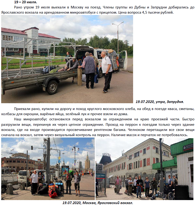 Наш поезд №376 Москва – Воркута отправлением в 13-05. Вагон у нас 1-ый, думали придётся далеко тащить вещи по перрону, но, к счастью, нумерация вагонов оказалась с хвоста поезда. Правда, крупногабаритные вещи: трубы для рам катамаранов, байды пришлось отнести в 8-ой вагон к начальнику поезда, где есть багажное купе. Оплату за багаж провели там же. Проводники в нашем вагоне мужчины, студентов, в связи с пандемией коронавируса, для обслуживания пассажиров не привлекали. Проводники постоянно в масках и перчатках, с пассажиров этого не требуют. Постоянно проводят уборку вагона и туалетов. Начальник поезда после отправления прошёл по составу, замерил температуру у каждого. В вагоне кондиционер, биотуалеты. Всё равно на каждой крупной станции все выходили из вагона на улицу, кто покурить, кто просто подышать свежим воздухом, кто что-то купить в привокзальных киосках. Сзади к нашему поезду прицепили аж 4 багажных вагона, теперь мы не в самом конце состава. В поезде отметили день рождения Двинских Володи.