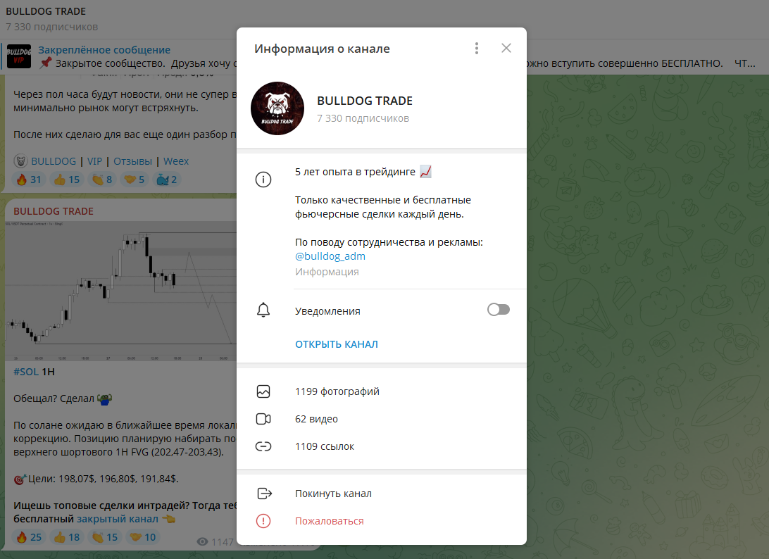 На первый взгляд, BULLDOG TRADE выглядит как солидный трейдерский проект: “5 лет опыта, только качественные фьючерсы, ежедневно бесплатные сигналы”. Админ канала уверяет, что делится аналитикой из чистого энтузиазма и помогает людям зарабатывать. Но стоит присмотреться — и становится ясно: за “бесплатным VIP” скрывается реферальная схема и платный вход, а не реальная помощь подписчикам. ✅ Если хотите узнать, где реально можно зарабатывать онлайн без депозитов и рефералок — переходите сюда.