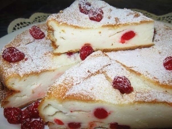 Ингредиенты: Взбиваем 500 граммов творога, желтки от 4 яиц, 7 столовых ложек сахара(я клала меньше,добавляла цукаты из вишни,а они сладкие), 2 ст.л.сметаны (с горкой),2 ст.л. крахмала(с горкой),ванилин. Приготовление: Отдельно взбиваем белки до стойких пиков и вмешиваем их в творожную массу. Получается очень воздушно. На этом этапе добавляем изюм,цукаты или другие сухофрукты. Выпекаем при 180-200 градусах 30-40 минут. Проверяем зубочисткой,я пекла подольше,всё зависит от величины духовки.