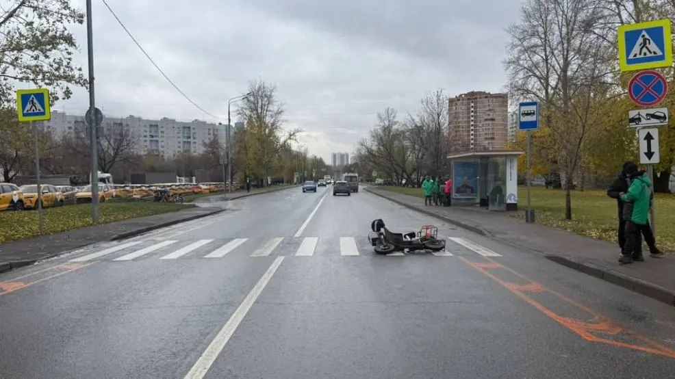 В Москве курьер на электромопеде столкнулся с пенсионеркой на переходе