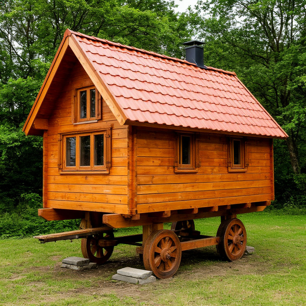 Избушка на курьих ножках из русских сказок не является прямым прообразом дома на колёсах, но её образ связан с идеей мобильности и нестандартной конструкции жилища. В фольклоре избушка Бабы-Яги часто описывается как строение, способное вращаться и перемещаться, что отражает древние представления о пограничных пространствах и магических свойствах таких построек.Исторический контекст избушки на курьих ножках