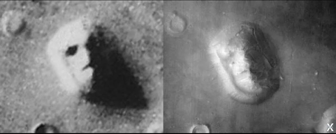 Марс — наш ближайший космический сосед и одна из самых изучаемых планет. Десятилетия его исследуют орбитальные аппараты, посадочные модули и роверы. Каждая новая миссия приносит тонны данных и тысячи изображений. И среди этого массива информации иногда встречаются снимки, которые заставляют ученых и энтузиастов почесать затылки. Что это — игра света и тени, причудливые скалы или следы чего-то большего? Давайте взглянем на самые известные «загадочные находки» на Марсе. 1. «Лицо на Марсе» — миф, породивший легенду Что было обнаружено: В 1976 году космический аппарат «Викинг-1» передал снимок региона Кидония, на котором был виден гигантский холм, удивительно похожий на человеческое лицо. Ажиотаж: Фотография мгновенно стала сенсацией. Заголовки газет кричали о марсианской цивилизации, оставившей нам послание, о сфинксе с Красной планеты. Это породило волну теорий о древних марсианах. Научное объяснение: Последующие миссии, особенно «Mars Global Surveyor» в 1998 и 2001 годах, сфотограф