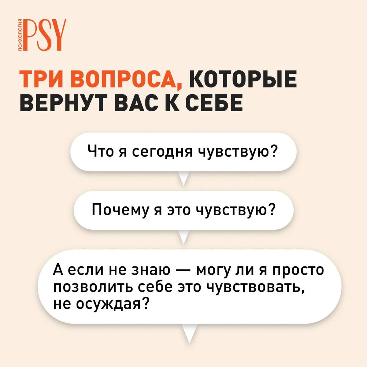 1️⃣1️⃣3️⃣6️⃣2️⃣2️⃣ ✏️Микро-диалог с собой, который стоит вести каждый день 📌Осознанность — это не медитация и не идеальное утро с мятным чаем. Это 2 минуты честности с собой. В любой момент. Даже в маршрутке. Даже в ванной. Даже в тишине перед сном. Задайте себе три простых вопроса: 🏳️ Что я сегодня чувствую? (Не «как я должен себя чувствовать», а что есть на самом деле.) 2️⃣ Почему я это чувствую? (Можно не копать глубоко. Иногда причина — в мелочах.) 🏳️ А если не знаю — могу ли я просто позволить себе это чувствовать, не осуждая? (Без анализа. Без запретов. Просто быть с этим.) 💡 Это и есть осознанность. Простая, но революционная практика, которая возвращает вастк себе — без ожиданий, без давления, без «надо». 📍📍@Пинский Вестник 📱ЮТУБ 📱САЙТ 📱ИНСТ 📱ВК 📱ОК 📱ФЕ 📱TikTok 📱Прислать новость