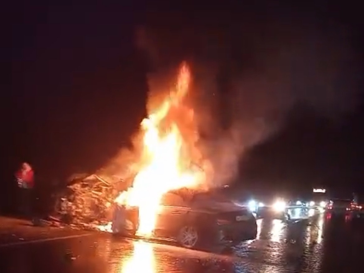 Одно авто горит, второе смято: страшная авария произошла на трассе в Карелии
