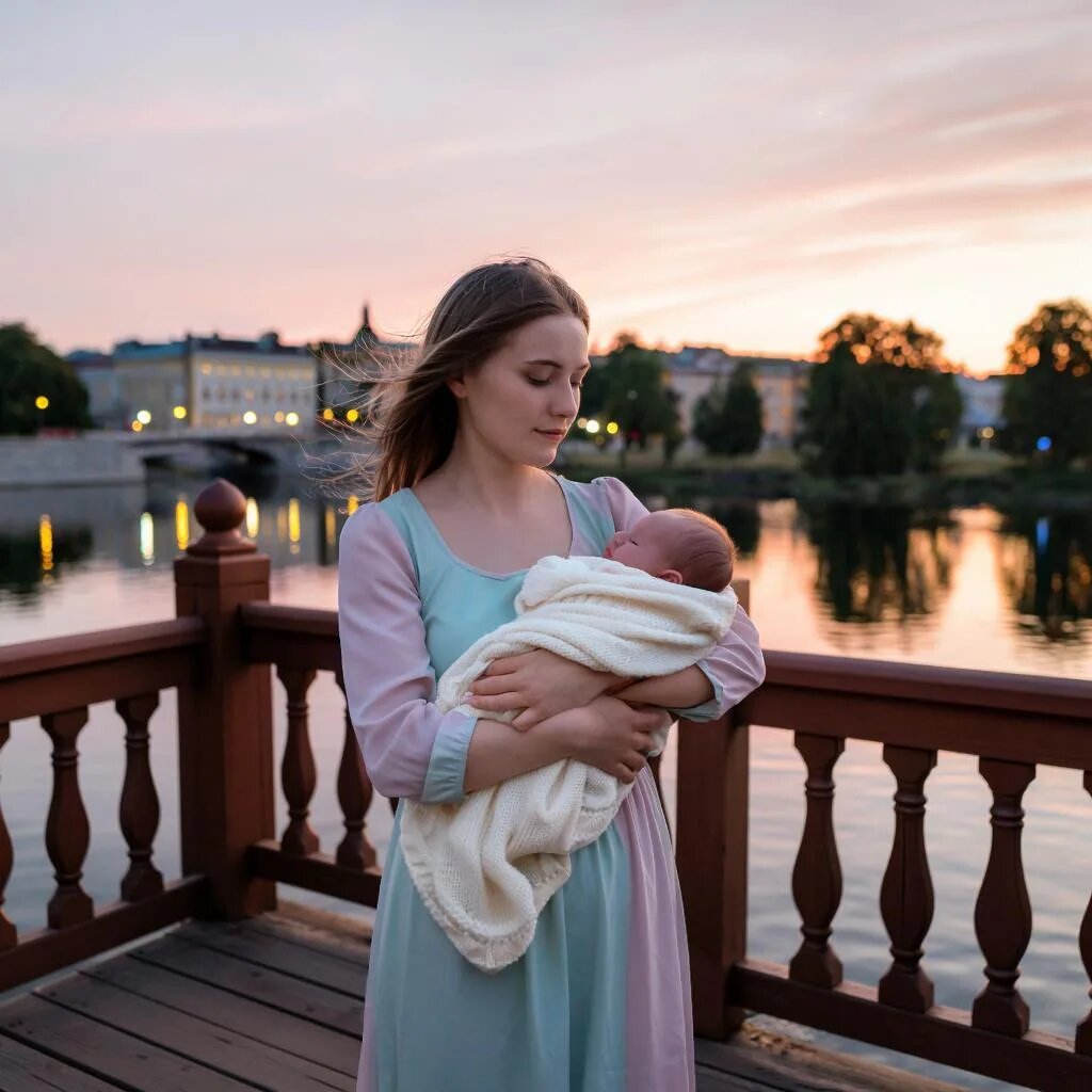 Он двинулся далее по мосту, и тут увидел на средине моста женщину, очень молодую. На груди рюкзак с маленьким ребёнком. Та стояла и смотрела на воду. И вдруг полезла на перила моста. Встала на верхнюю перекладину расставила руки и… Никита бросился к ней. Успел схватить за талию, прижал к себе, и они вместе упали на пыльную мостовую. Заплакал ребёнок.