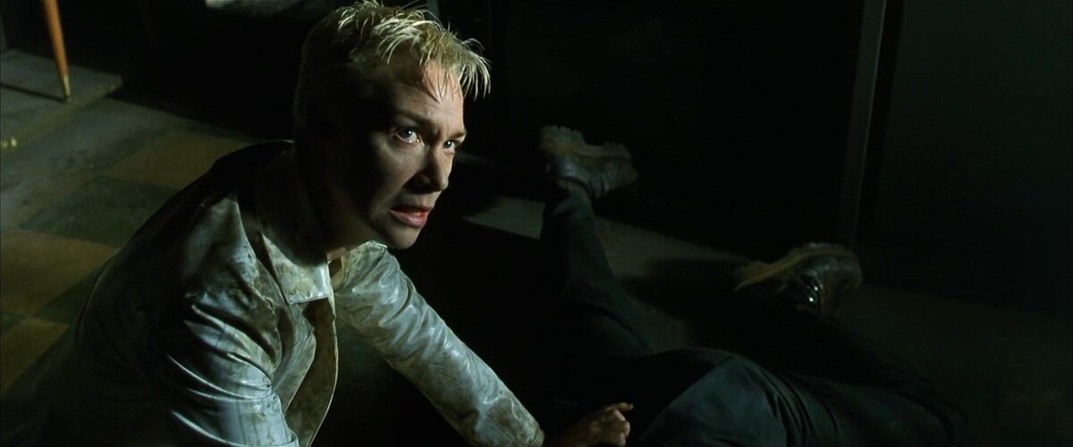 Когда команда Морфеуса проникает в здание, чтобы вывести Нео, Свитч держится в тени, но каждый её взгляд говорит о готовности умереть. В момент хаоса она остаётся собранной, как будто смерть для неё — не конец, а просто другой уровень игры.