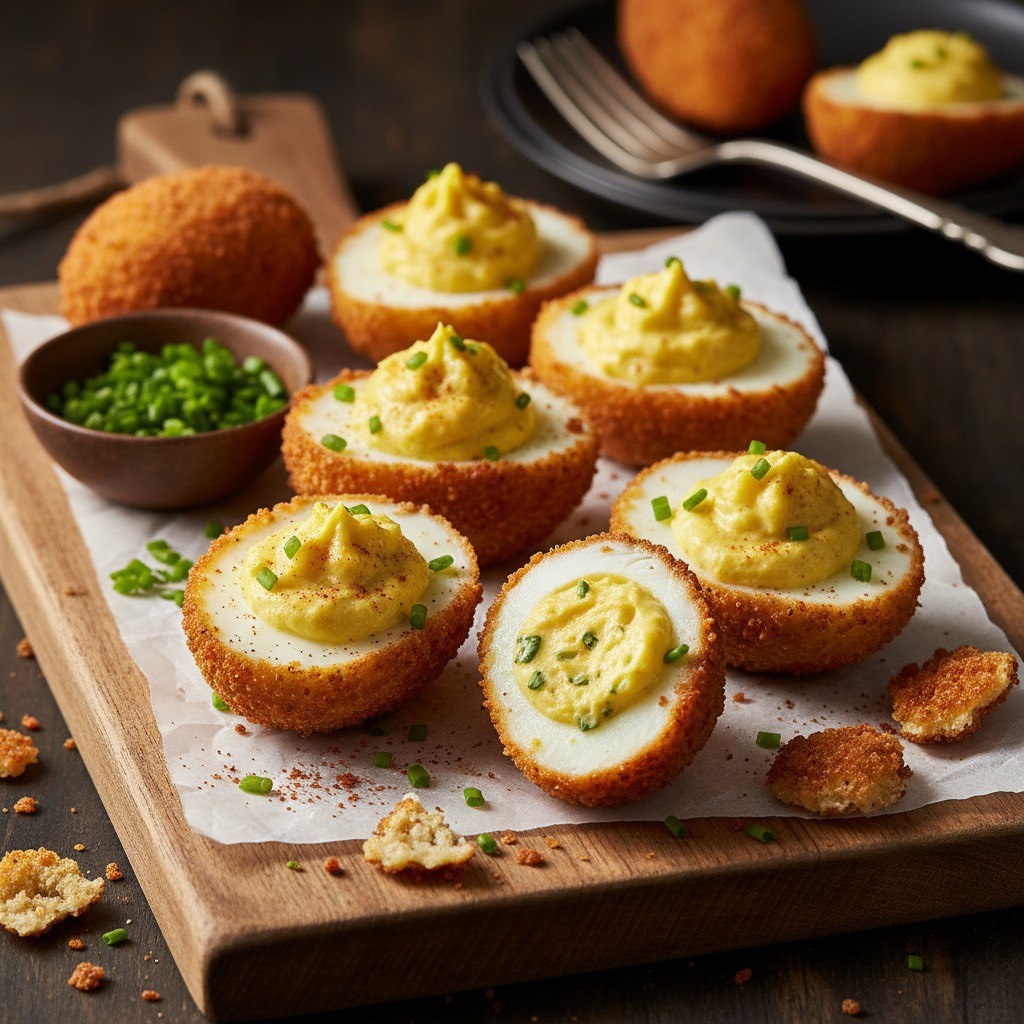 - Двойная панировка: Для более плотной и хрустящей корочки обваляйте яйца в панировке дважды.