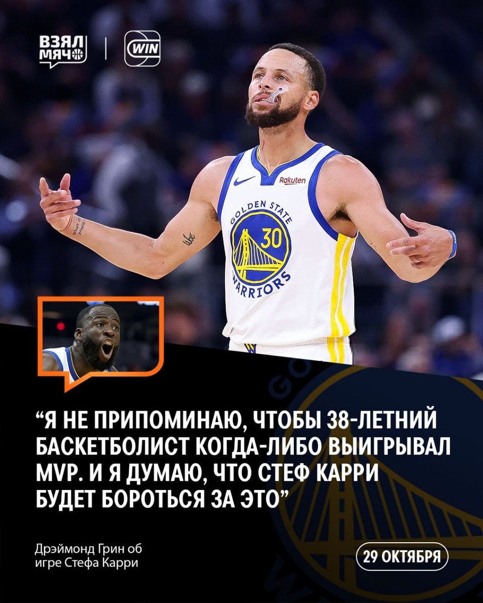 🗣 «Что касается награды MVP — не знаю, видел ли кто-то подобное раньше, но если да, прошу прощения. Однако я не припоминаю, чтобы 38-летний баскетболист когда-либо выигрывал MVP. И я думаю, что Стеф Карри будет бороться за это.