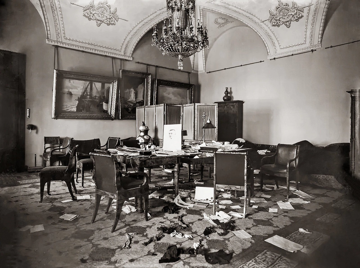Наибольший урон был нанесен личным покоям императорской семьи. Здесь ярость толпы носила характер символической расправы. Портреты Романовых были проткнуты штыками, бесценный фарфор разбит, интимные дневники и письма разбросаны по полу. Это была не просто жажда наживы, а стремление осквернить, унизить символы ненавистного старого мира.