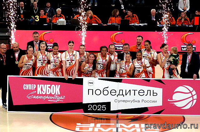 В Екатеринбурге разыграли первый трофей текущего сезона в женском баскетболе. В игре за Суперкубок России встретились финалисты прошлого плей-офф – БК УГМК и оренбургская «Надежда». С первых минут игра приобрела упорный характер. На старте вперед вырвались оренбурженки, лидером которых выступила Эшли Беверли. К 4-й минуте трехочковый Ксении Афанасенко позволил гостьям создать небольшой отрыв – 3:9. Однако «лисицы» понемногу подтянулись. «Треха» Карины Низамовой вывела хозяек вперед, и до конца отрезка БК УГМК удерживал перевес. Вторая четверть началась при счете 21:15. Вскоре Низамова забила после прохода, а Йована Ногич поразила кольцо с дальней дистанции, и разница выросла до +11. Тренерский штаб «Надежды» был вынужден взять тайм-аут. Этот ход помог. Беверли и Елизавета Комарова организовали погоню. Очередной рывок хозяек последовал ближе к перерыву – Виктория Третьякова и Меган Уокер точно атаковали из-за дуги. Впрочем, ни о каком тотальном перевесе речь не шла. Отдыхать соперницы у
