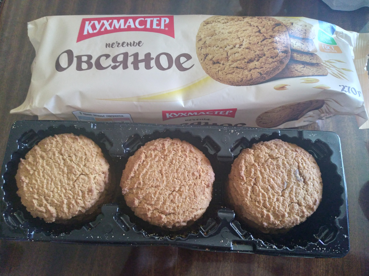 Регулярно беру Печенье Кухмастер Золотая симфония 230 г, стоит от 100 руб до 150 в зависимости от магазина. Купить Можно, например, здесь: Оно очень нежное, вкусное, отлично подойдёт для пенсионеров, которым жёсткое есть уже трудно. Поэтому взял смело на пробу печенье овсяное кухмастер, надеясь на такой же эффект и разочаровался. Печенье оказалось плесневым, хотя срок годности был в порядке и упаковка не была нарушена. Плесневое печенье я выбросил, и решил всё-таки попробовать, они просто в рецептуру печенье золотая симфония добавили овсяные составляющие, в итоге получилось не пойми что, это совершенно невкусно и несъедобно, даже с голодухи, на классическое овсяное печенье не похожее вообще, поэтому название совершенно не соответствует составу, единственный плюс, что оно такое же мягкое как золотая симфония. Никому не рекомендую, и даже за бесплатно такое не возьму. Это совершенно неудачный эксперимент. Они решили расширить линейку своего печенья, но лишь отпугнули от своей марки посто